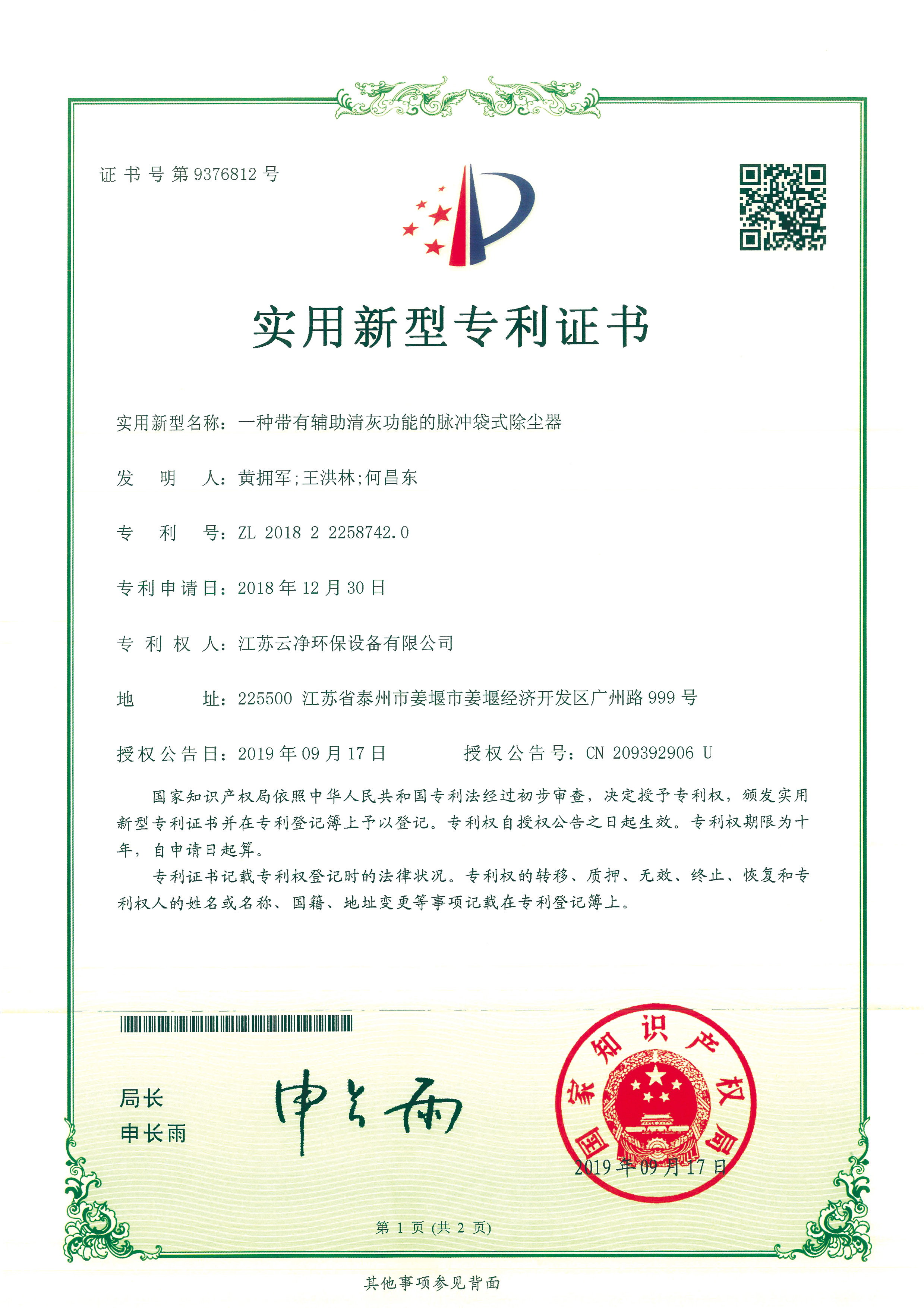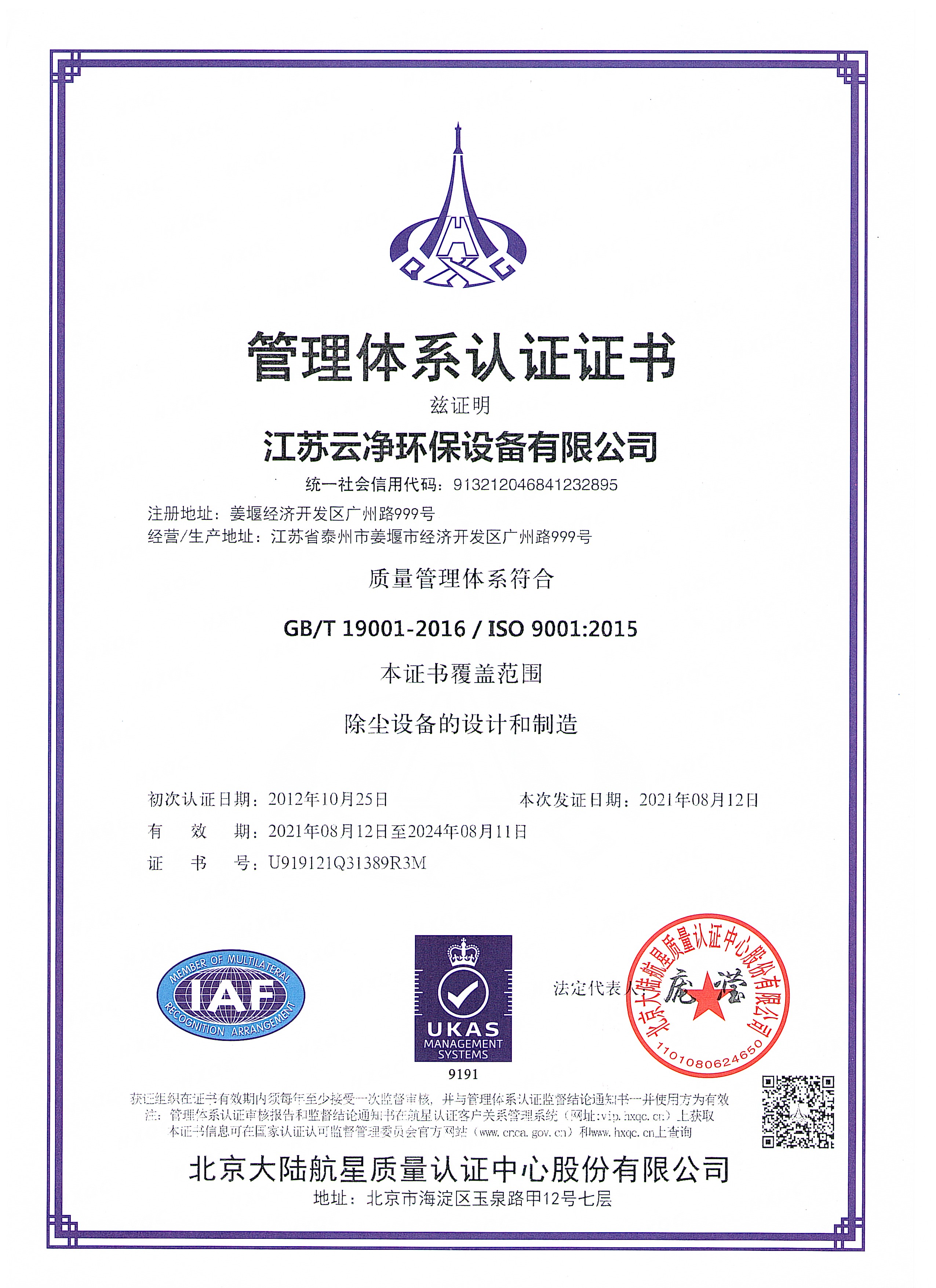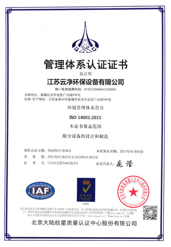 公司先后獲得“江蘇省民營科技企業”﹑“環保產業骨干企業” 、“重合同守信用AA級企業” 、通過ISO9001:2015質量體系認證、ISO14001:2015環境管理體系、知識產權管理體系和ISO45001:2018職業健康安全管理體系認證,為江蘇省高新技術企業。多項產品獲得高新技術產品認定,擁有發明及實用新型專利31件(ZL202020254279.7、ZL202020254287.1、ZL202020288783.9等),現有各類除塵設備﹑脫硫設備﹑超凈排放設備八大類近200個規格產品,特別是開發出國內的有色冶煉系統收砷布袋除塵器,該設備開創了收砷布袋除塵器先例,本體使用壽命可達十年之久,是國內其他設備無法比擬的。公司具備良好的產品研發能力,通過與相關科研院所技術合作開發了高效除塵器、燒結板除塵器、濾筒除塵器、脫硫濕電超凈排放一體化設備、中低溫脫硝設備、等離子體除臭設備等,產品受到用戶的一致好評。