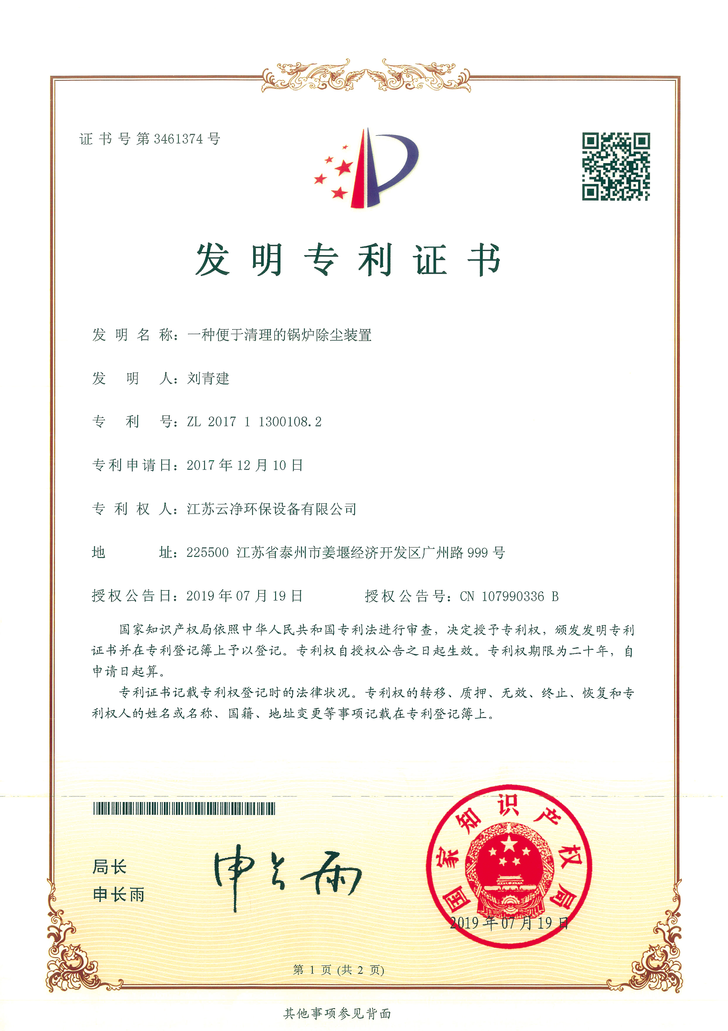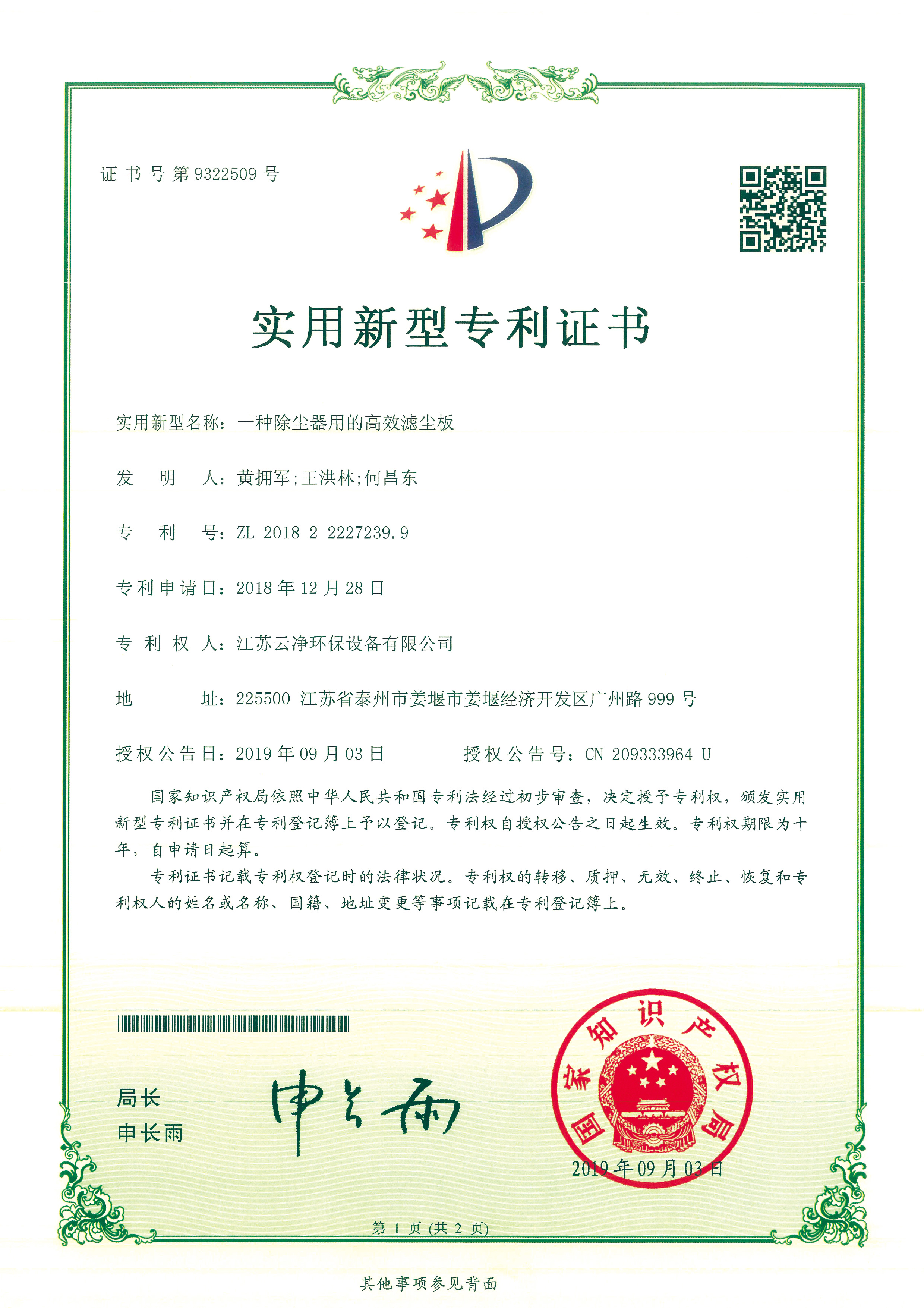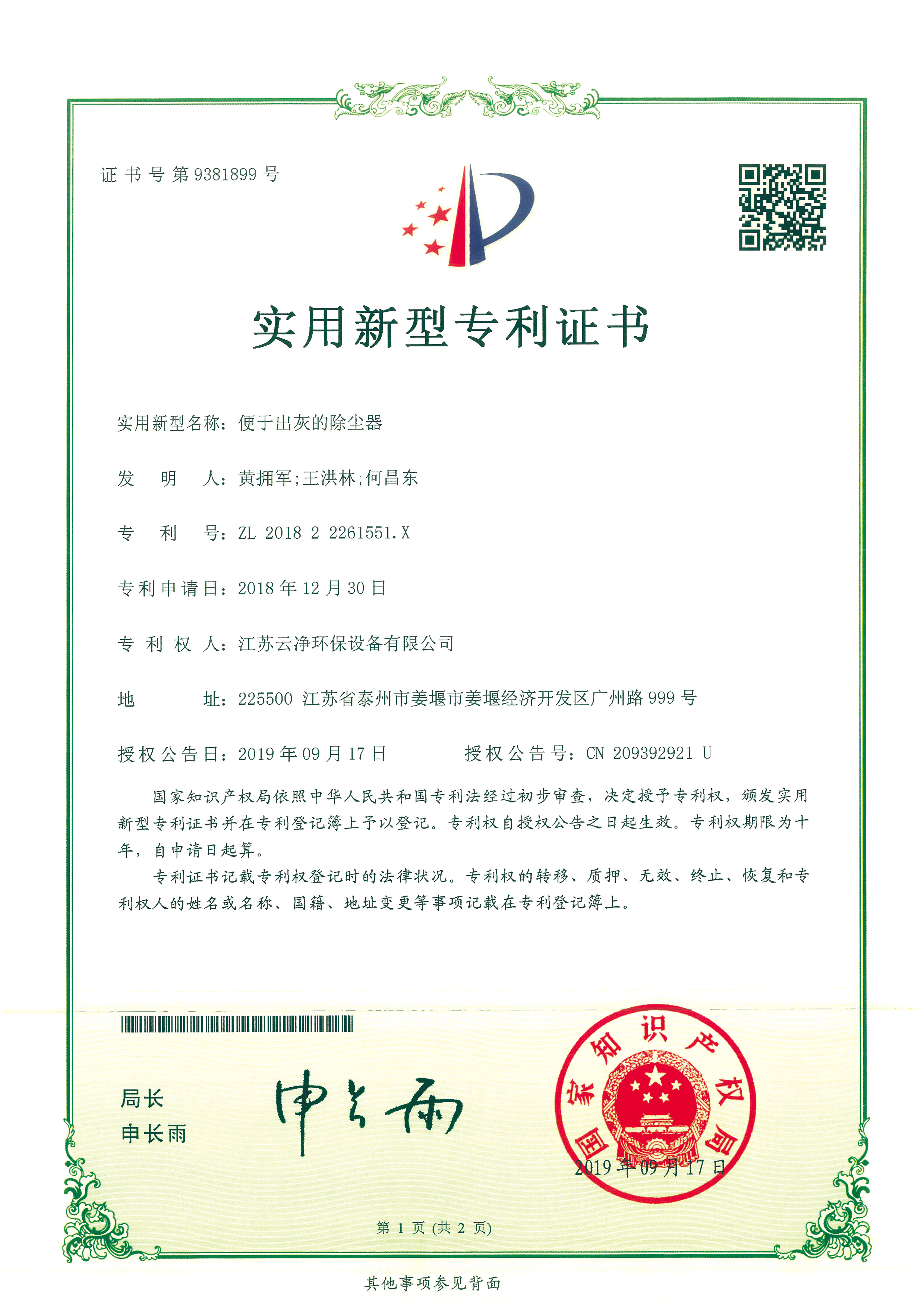 公司先后獲得“江蘇省民營科技企業”﹑“環保產業骨干企業” 、“重合同守信用AA級企業” 、通過ISO9001:2015質量體系認證、ISO14001:2015環境管理體系、知識產權管理體系和ISO45001:2018職業健康安全管理體系認證,為江蘇省高新技術企業。多項產品獲得高新技術產品認定,擁有發明及實用新型專利31件(ZL202020254279.7、ZL202020254287.1、ZL202020288783.9等),現有各類除塵設備﹑脫硫設備﹑超凈排放設備八大類近200個規格產品,特別是開發出國內的有色冶煉系統收砷布袋除塵器,該設備開創了收砷布袋除塵器先例,本體使用壽命可達十年之久,是國內其他設備無法比擬的。公司具備良好的產品研發能力,通過與相關科研院所技術合作開發了高效除塵器、燒結板除塵器、濾筒除塵器、脫硫濕電超凈排放一體化設備、中低溫脫硝設備、等離子體除臭設備等,產品受到用戶的一致好評。